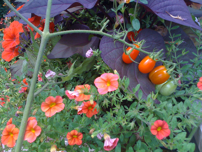 tomatosflowersLG Published August 29, 2011 at 800 × 600 in The Sound of the August Garden Million bells and cherry tomatoes