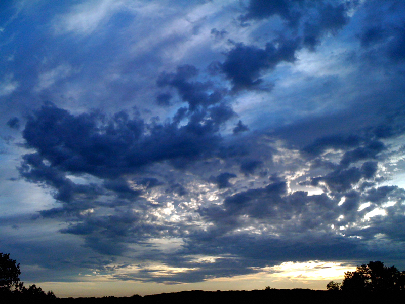 Finally the rain trickles to a few drops, the cicada buzz rises to the fore again, a car passes by splashing through the puddles, and a crow caws in the distance. Cardinals and woodpeckers chime in and the hummingbird reappears. Water quietly drips from the trees, the woods around me take on a golden glow as the clouds drift away. A soft murmur of thunder leaves a trail of sound in the distance.