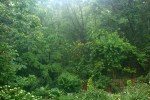 It’s not long before the rain comes – I grab the Zoom and head for the protection of the covered deck but decide to leave the record button on and capture the entire event. At first, the rain is a gentle swishing curtain of sound but it soon builds to a pounding roar slicing through the trees, hammering the roof. A hummingbird still trying to feed gives up and flits into the woods for cover. There is a complex rhythm to it all, an aural story of sounds intertwined in a bigger than life tableau. I wonder how long it has been since I’ve sat outside and really listened to an entire thunderstorm from beginning to end, resisting the urge to refill my coffee cup or check my e-mail. Years, probably. Yet, because I wanted to capture the entire event, I relax and listen and surrender to the moment. I become aware of the progression of the storm as if I were in a concert hall, the quiet passages, the crescendos, the bold dramatic punctuations, and the unexpected layers of birds and insects that remained a part of the aural tapestry.