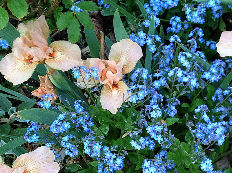 peachirisfgmnWP Published April 23, 2012 at 800 × 598 in My World Is Blue Peach iris and forget-me-nots