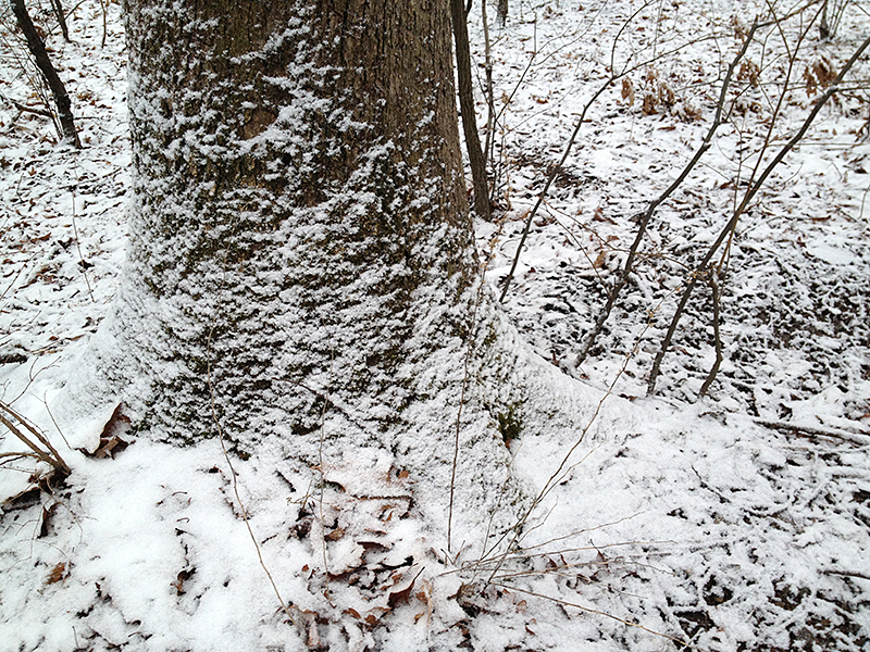 Snowy tree roots