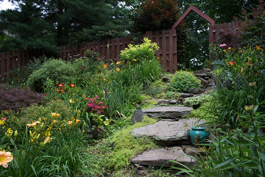 upstepsleftWP Published July 13, 2014 at 899 × 600 in The Big Picture Soft blooms framed by stone and wood