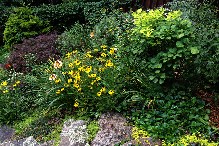 I like the way the ground covers and rocks work together here – the lichens and textures and different foliage colors – beautiful..