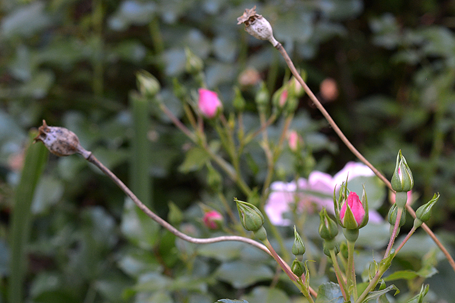 Rosebuds and poppy seed heads