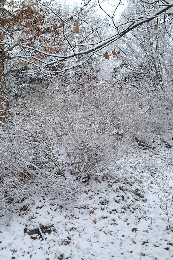Forsythia in snow