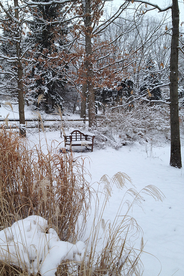 Lutyens bench in snow