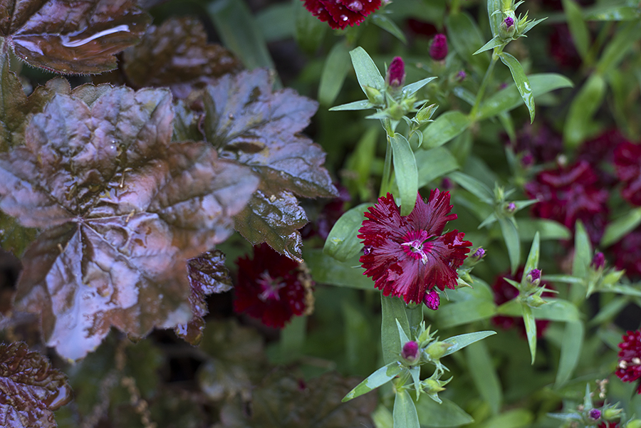 Dianthus with Heuchera ‘Palace Purple’