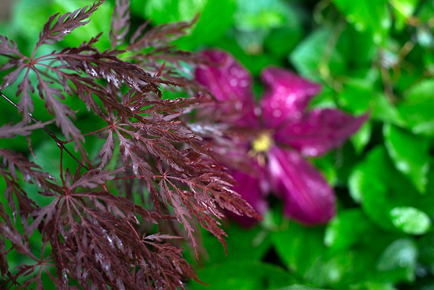 acerniobe Published June 5, 2016 at 900 × 601 in Continuum Acer japonica ‘Inaba Shidare’ and Clematis ‘Niobe’