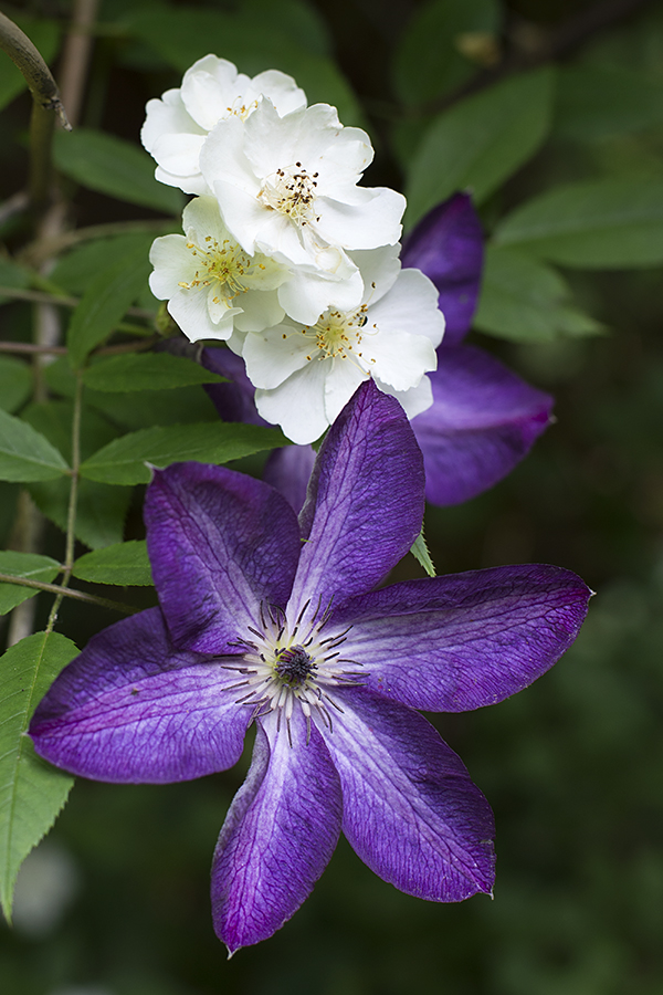 darlowvenosa Published June 15, 2016 at 600 × 900 in Wine and Roses Hybrid musk rose ‘Darlow’s Enigma’ and Clematis vit. ‘Venusa Violacea’