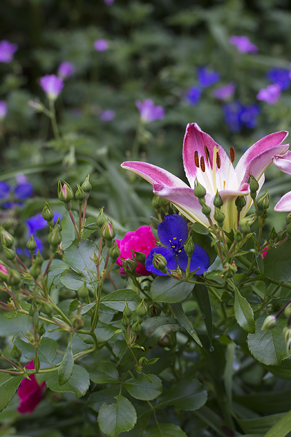 lilyrose Published June 15, 2016 at 600 × 900 in Wine and Roses Asiatic lily ‘Lollipop’ with roses and Tradescantia ohioensis
