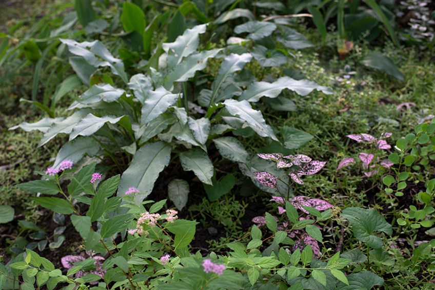 pulmonariapolkadotWP Published July 8, 2016 at 900 × 601 in A Garden in the Woods Pulmonaria and Polka-dot plant (Hypoestes)