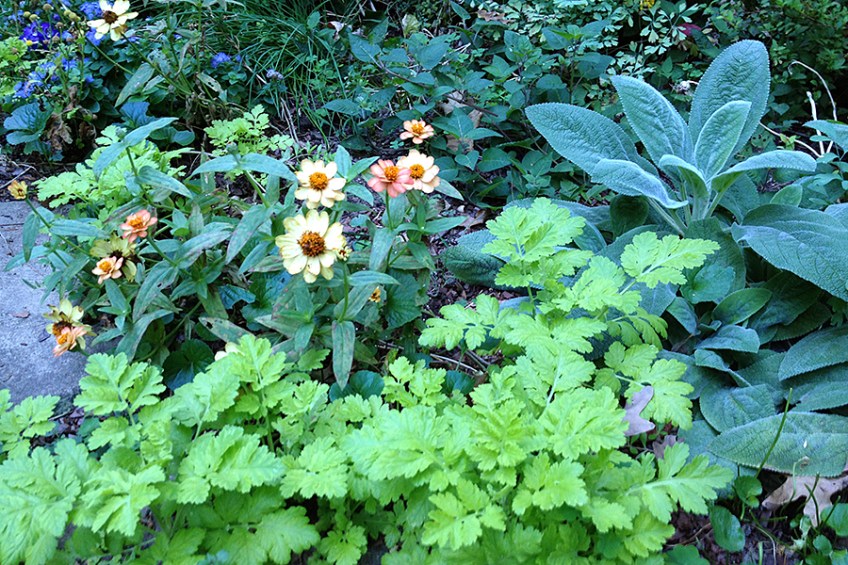 Two flowers I love – zinnias because they’re a childhood favorite, even if they are kind of stiff, and feverfew for many reasons. You always do a great job with the combinations, and the foliage colors and textures. Reply ↓