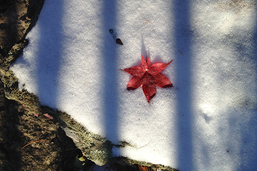 redleaf_snow Published November 23, 2016 at 900 × 601 in The Air Wild with Leaves Bloodgood maple leaf in snow