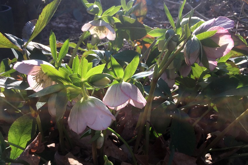 morninghelleboresWP Published March 11, 2017 at 901 × 600 in Four and Twenty Hours Helleborus orientalis in morning sun