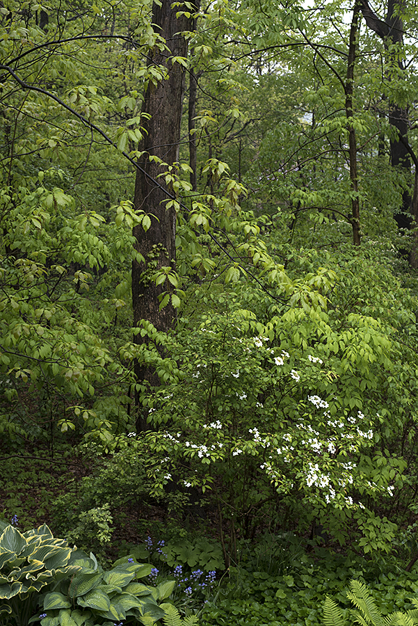 woodlandhostaWP Published May 12, 2017 at 601 × 900 in Of trees and greenness Woodland with hostas and Viburnum ‘Summer Snowflake’