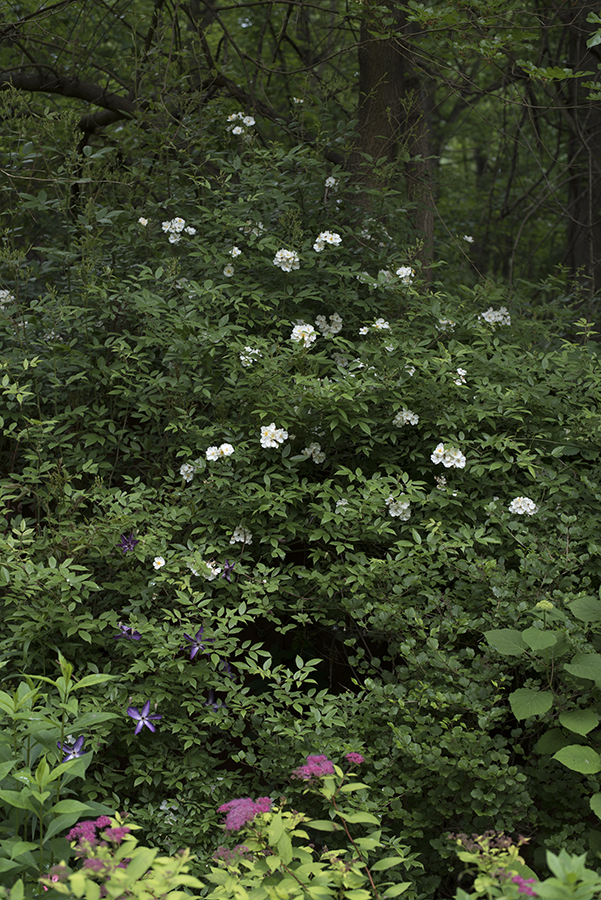 darlowclimbing Published June 4, 2017 at 601 × 900 in An instrument of grace Rose ‘Darlow’s Enigma’ climbing the fence into the mulberry tree
