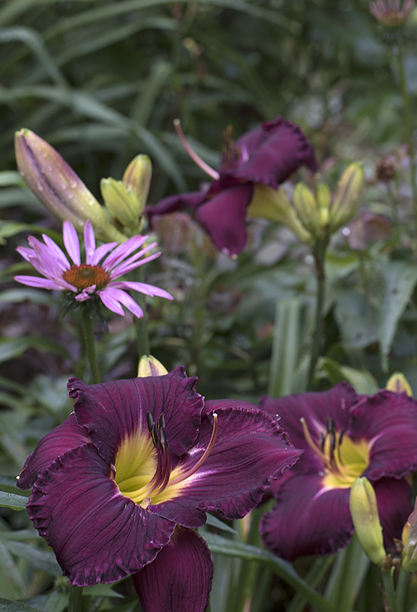 nosferatu Published July 16, 2017 at 601 × 883 in The garden is singing Daylily ‘Nosferatu’ and Echinacea ‘Ruby Star’