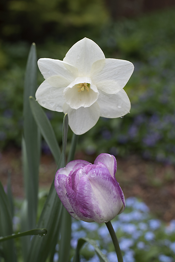 bellacoolashirleyWP Published May 11, 2018 at 600 × 900 in Tipping Point Daffodil ‘Bella Coola’ and tulip ‘Shirley’