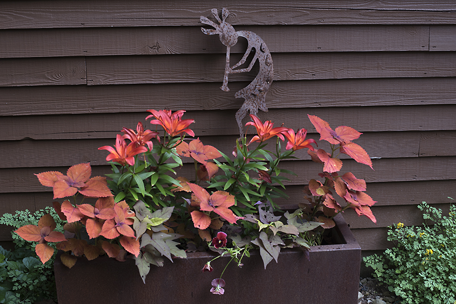 cortenplanterWP Published July 4, 2018 at 900 × 601 in That beautiful season Lilies and Coleus ‘Sedona’