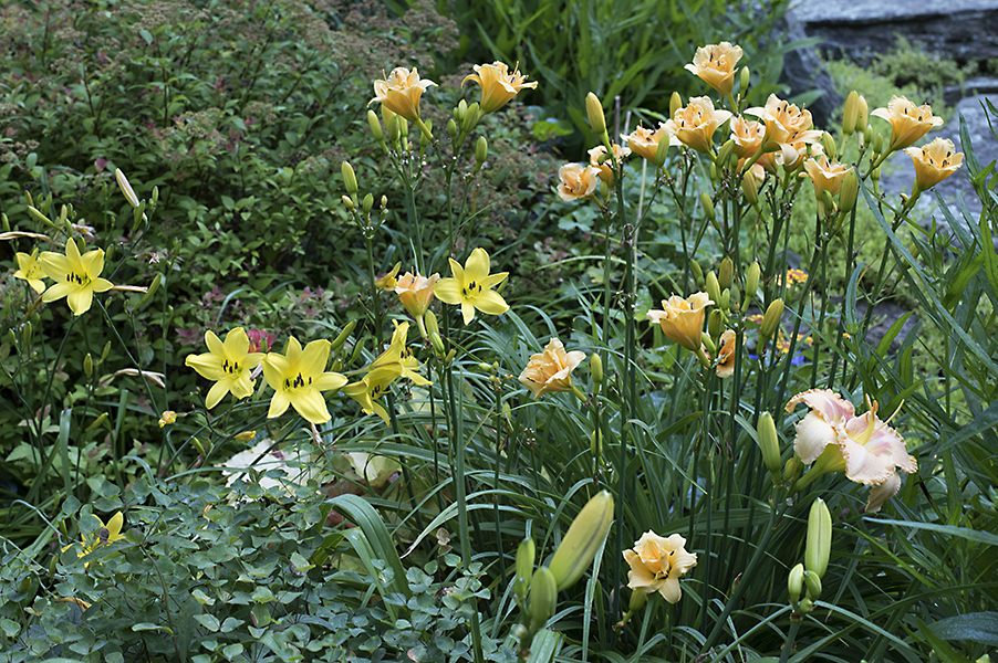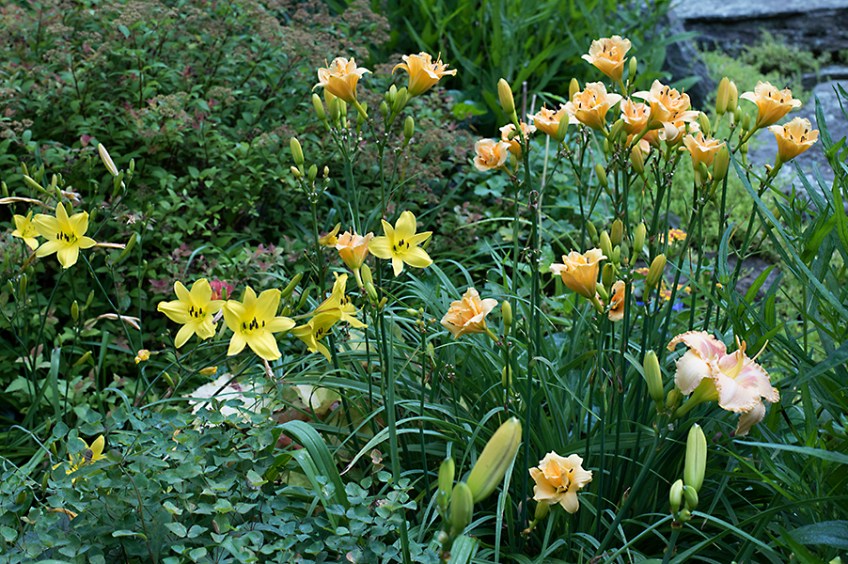 Peach and gold daylilies