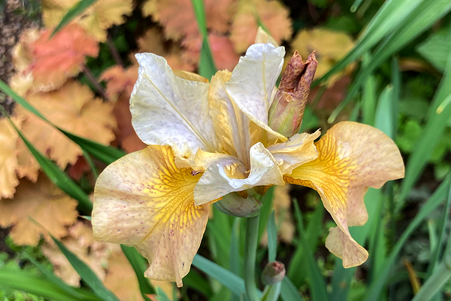 butterscotchfizzcaramel Published June 4, 2022 at 899 × 600 in When June comes dancing Iris siberica ‘Butterscotch Fizz’ with Heuchera ‘Caramel’