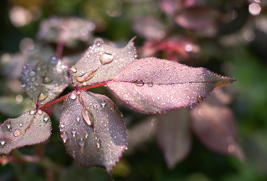 raindrops_roseleafWP Published September 22, 2023 at 900 × 609 in A moment of balance New rose leaves
