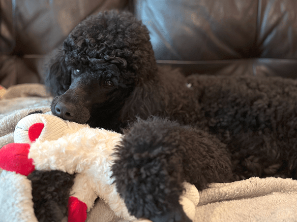 Two years ago, on a bitterly cold January day, we brought sweet Pixie home, a 6 month old poodle puppy frightened because she had never been away from her first home before. She was reassured by stuffed toys and cuddles and quickly settled into our lives. Her first moments outside were spent dashing joyfully through the deep snow while I laughed at her antics.