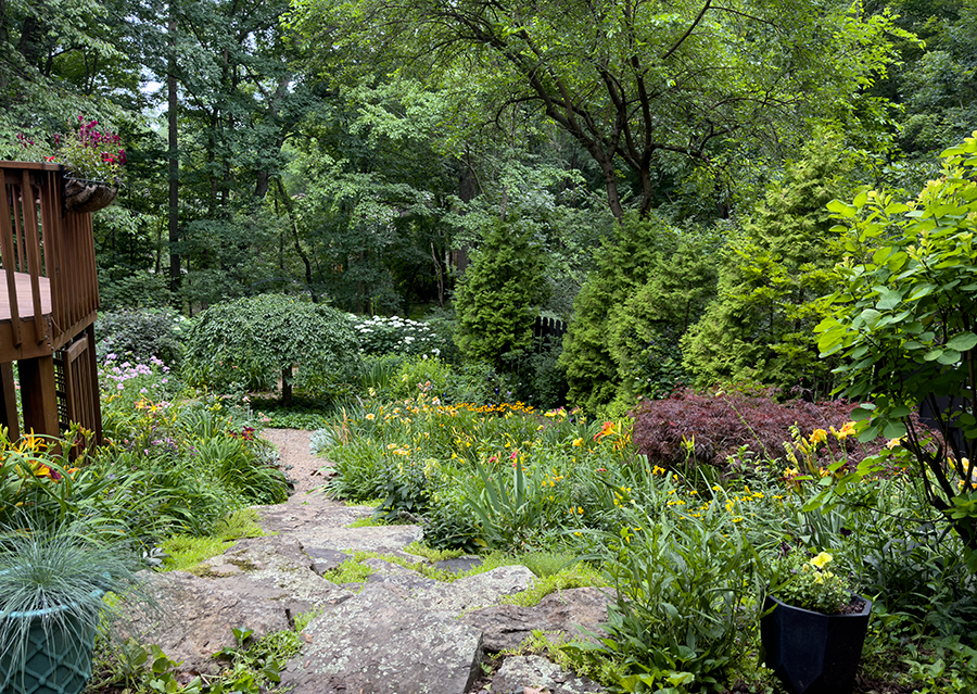 There were problems to solve before the garden could be planted – solid clay instead of soil, decayed wooden steps into the lower garden, and deer living under our deck. It took the rest of the first year to solve those problems before I could actually begin the pretty part.