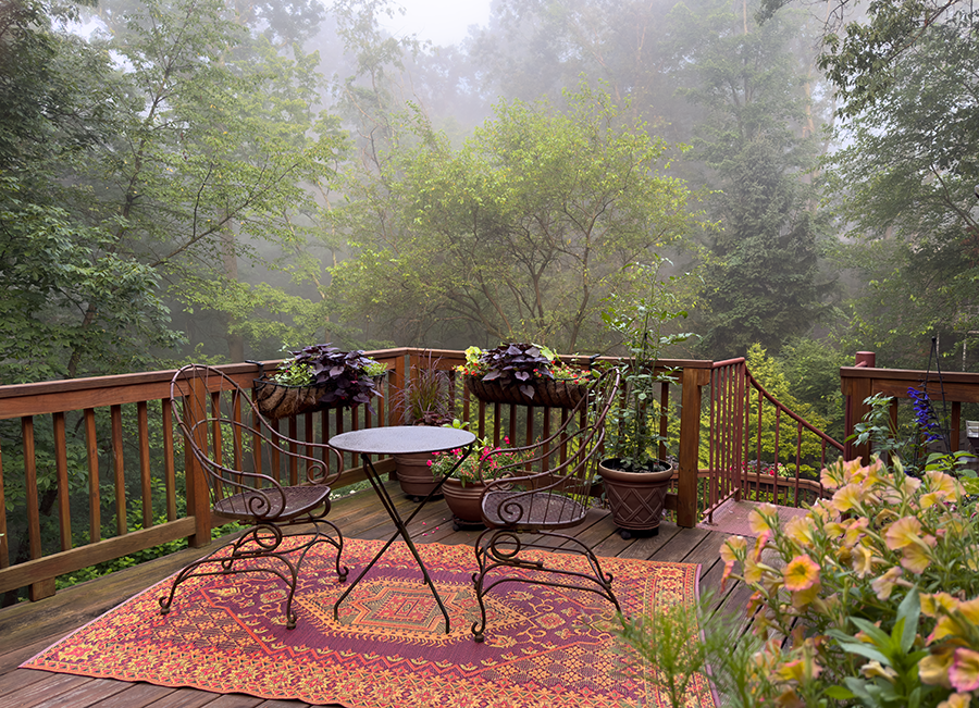 Cool foggy mornings are a special joy, wrapping the garden in quiet. They create rich moments of saturated color that enspell me and often make me late for appointments, as I cannot bear to leave such a gift of beauty.