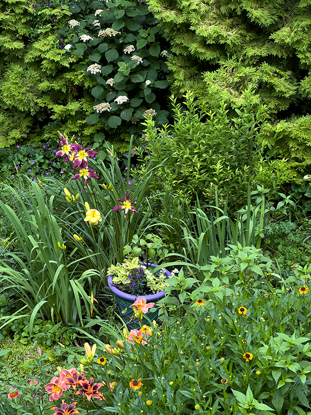 Weeks of heavy rains and hot weather triggered lush growth in this young garden, making it look mature beyond its years.